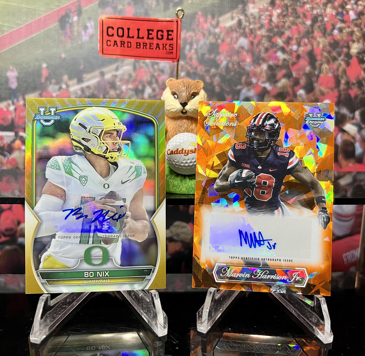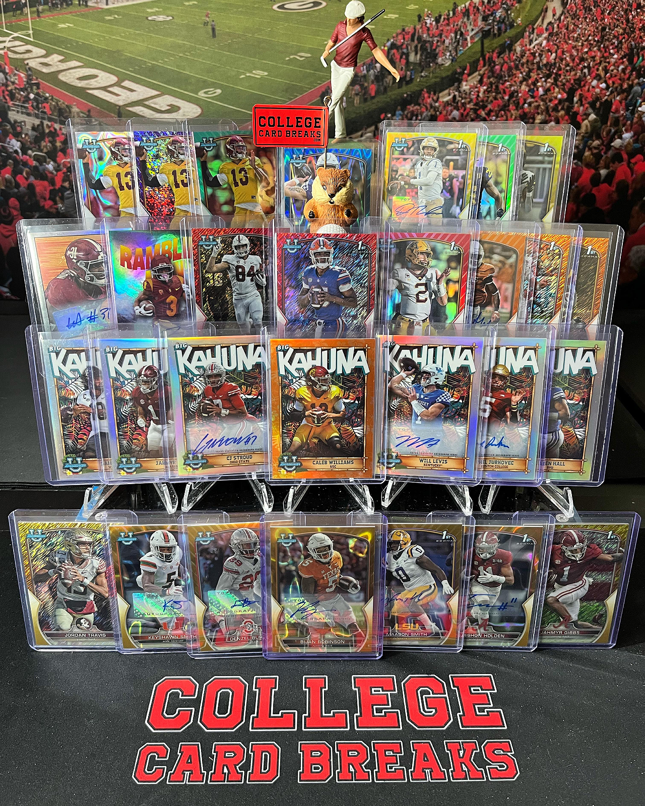 We only break the best quality college football product available! Currently that is THE NEW 2023 Bowman University Chrome Football by Topps, come on in... the cardboards fine!